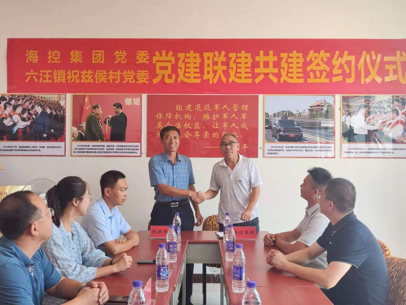 8月24日上午,??丶瘓F(tuán)黨委與六汪鎮(zhèn)祝茲侯村黨委開展黨組織聯(lián)建共建簽約儀式,海控集團(tuán)黨委副書記、總裁孟憲洪,六汪鎮(zhèn)黨委委員馮偉、副鎮(zhèn)長李揚(yáng)眉、管區(qū)主任張森國等參加活動。