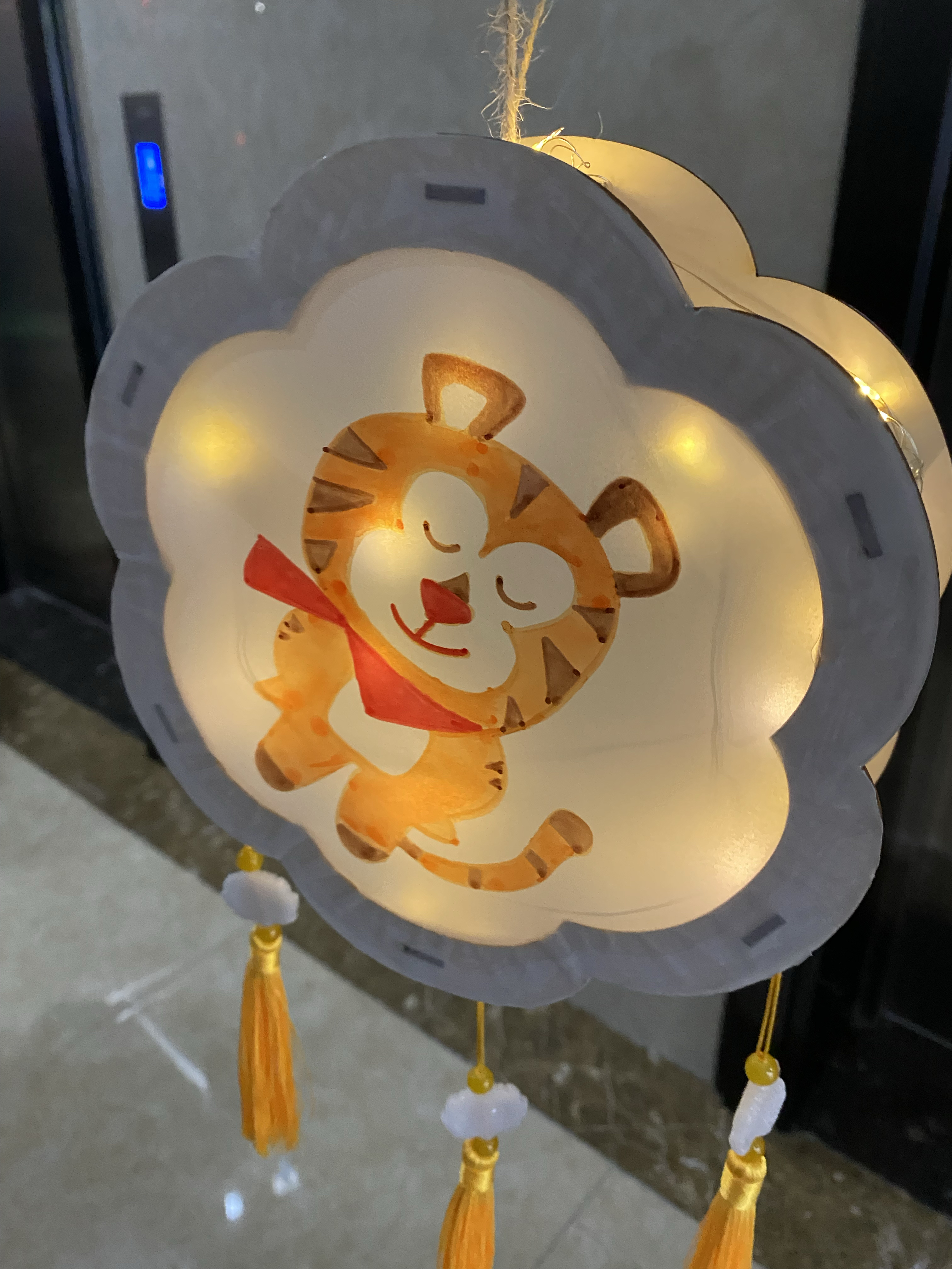 猜完燈謎,就到了大家最期待的做花燈環(huán)節(jié)。大家拿到材料包后,迫不及待地打開研究起來。集團(tuán)的小哥哥小姐姐們小心翼翼修剪、鏤空好燈面,并仔細(xì)地將不同的燈面粘貼、拼接起來。最后給燈籠掛上流蘇,頂部裝好燈桿,內(nèi)部插上彩燈后,一個精美的元宵燈就誕生了?!斑@是我親手做的燈籠,象征幸福、祥和,簡直太好看了!”做好燈籠的邵山成就感滿滿,興奮地和燈籠合影留念。