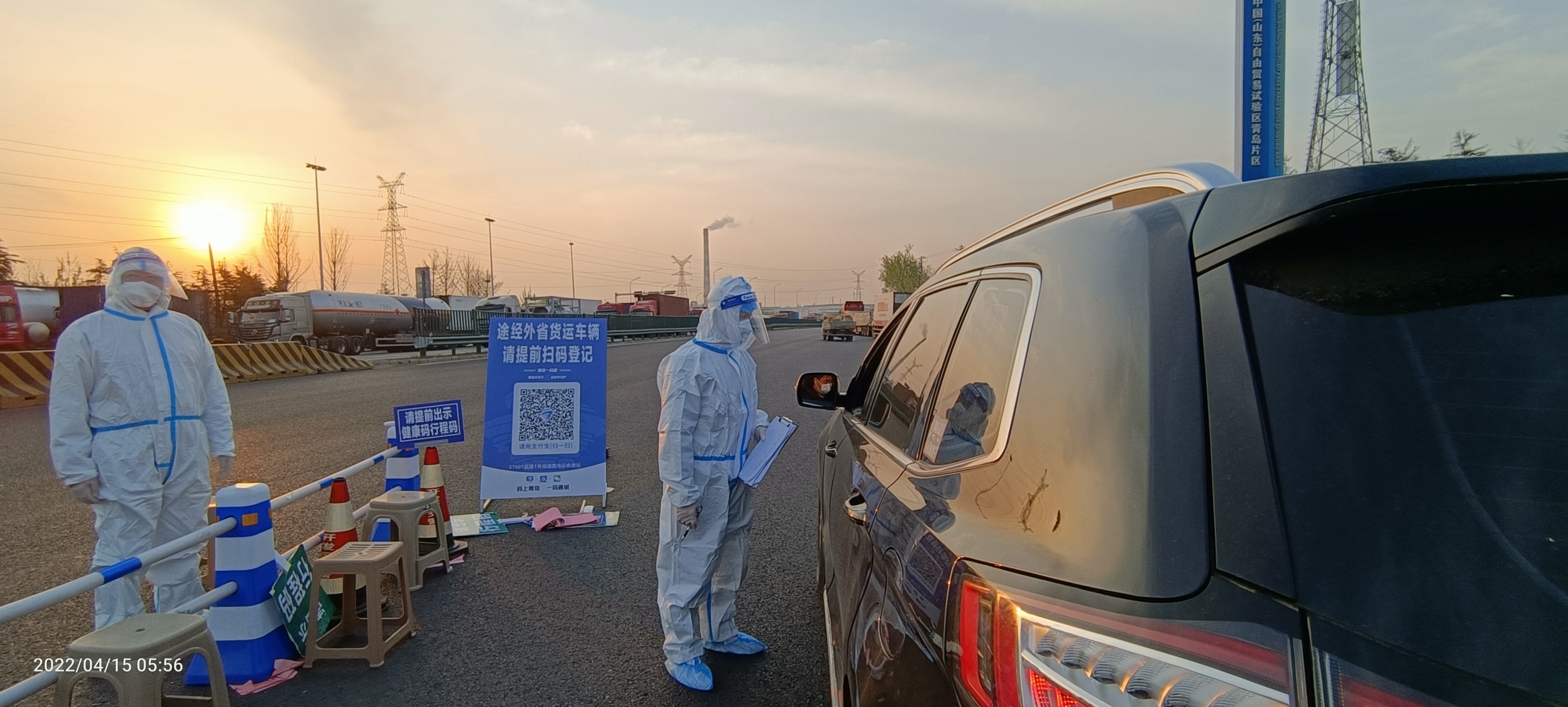 “我們采用三班倒的工作方式,每班八小時,二十四小時不間斷執(zhí)勤,對下高速的車輛和人員進行查驗,檢查健康碼、行程碼,不落一車,不漏一人。對中高風(fēng)險地區(qū)來青人員進行檢查登記,并引導(dǎo)進行抗原檢測。”杜磊說,一個班八小時查驗一千一百多輛車,幾乎不間斷。夜間特別是零點以后,車輛相對來說會少一點。