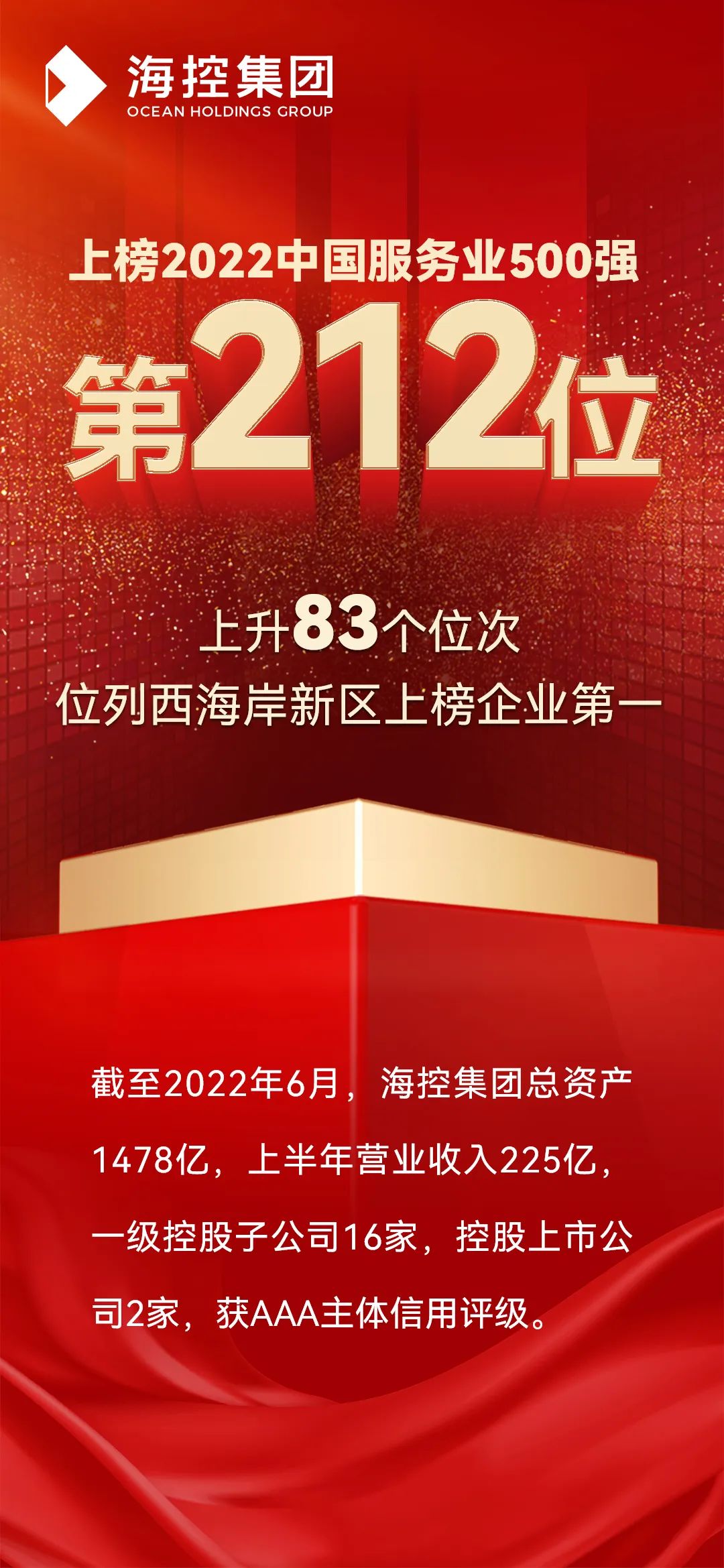 喜報(bào) | 中國服務(wù)業(yè)500強(qiáng)發(fā)布,??丶瘓F(tuán)排名第212位,位列新區(qū)上榜企業(yè)第一