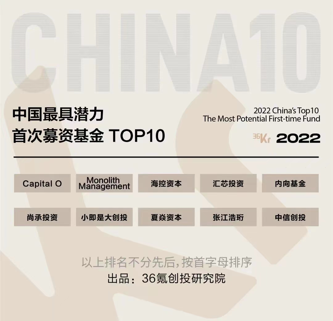 9月21日,36氪“2022中國基金合伙人未來峰會(huì)”在杭州舉行,會(huì)上揭曉了2022年度中國基金系列榜單,??刭Y本榮獲「2022年度中國最具潛力首次募資基金TOP10」榮譽(yù),收獲行業(yè)權(quán)威認(rèn)可。