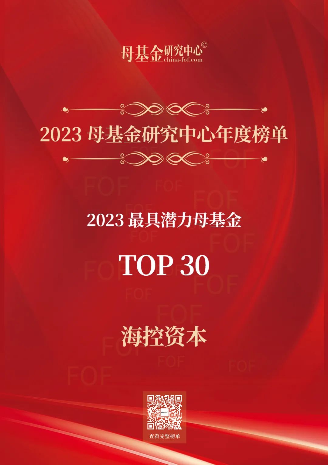 喜報(bào) | 海控資本獲評(píng)「2023年最具潛力母基金TOP30」