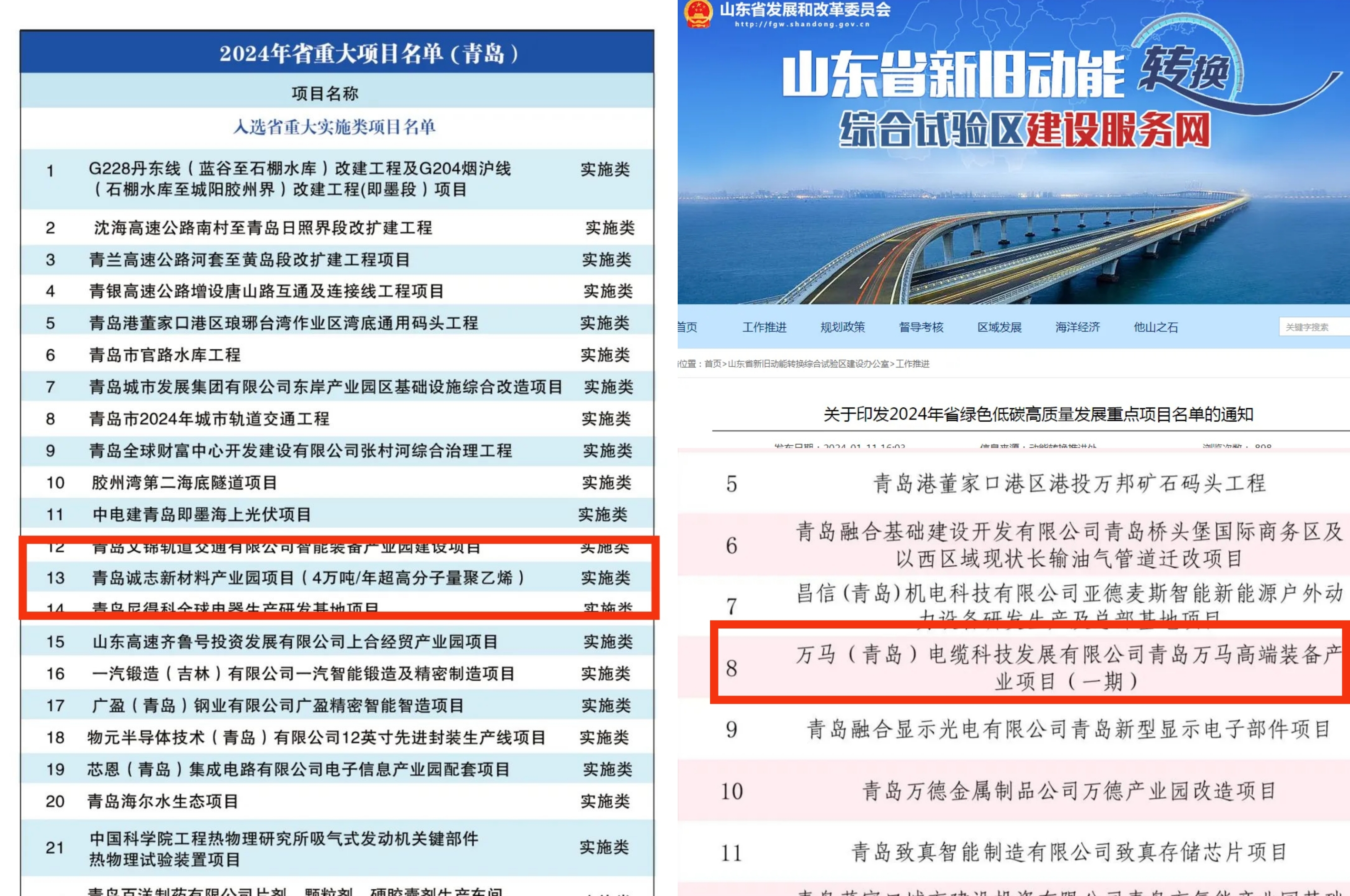 近日,山東省公布2024年重大項目名單和省綠色低碳高質(zhì)量發(fā)展重點項目名單,青島誠志新材料產(chǎn)業(yè)園項目入選山東省2024年重大項目名單,萬馬高端裝備產(chǎn)業(yè)項目入選2024年山東省綠色低碳高質(zhì)量發(fā)展重點項目名單。