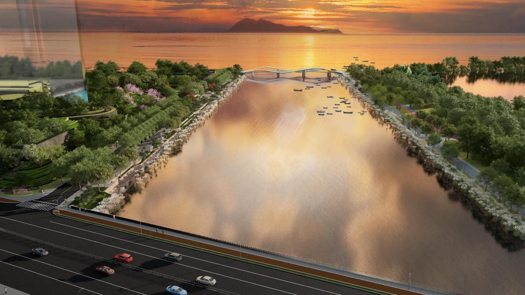 大盧河兩岸改造提升項目通過統(tǒng)一的設計風貌形成與周邊地塊相匹配的城市環(huán)境,西岸與城市陽臺景區(qū)相接,東岸與青島紅樹林度假世界相接,南側設有一座設計優(yōu)美的波浪形的大盧河景觀橋與新藍灣步道銜接,將城市功能組團相連,放大原有資源的空間價值。