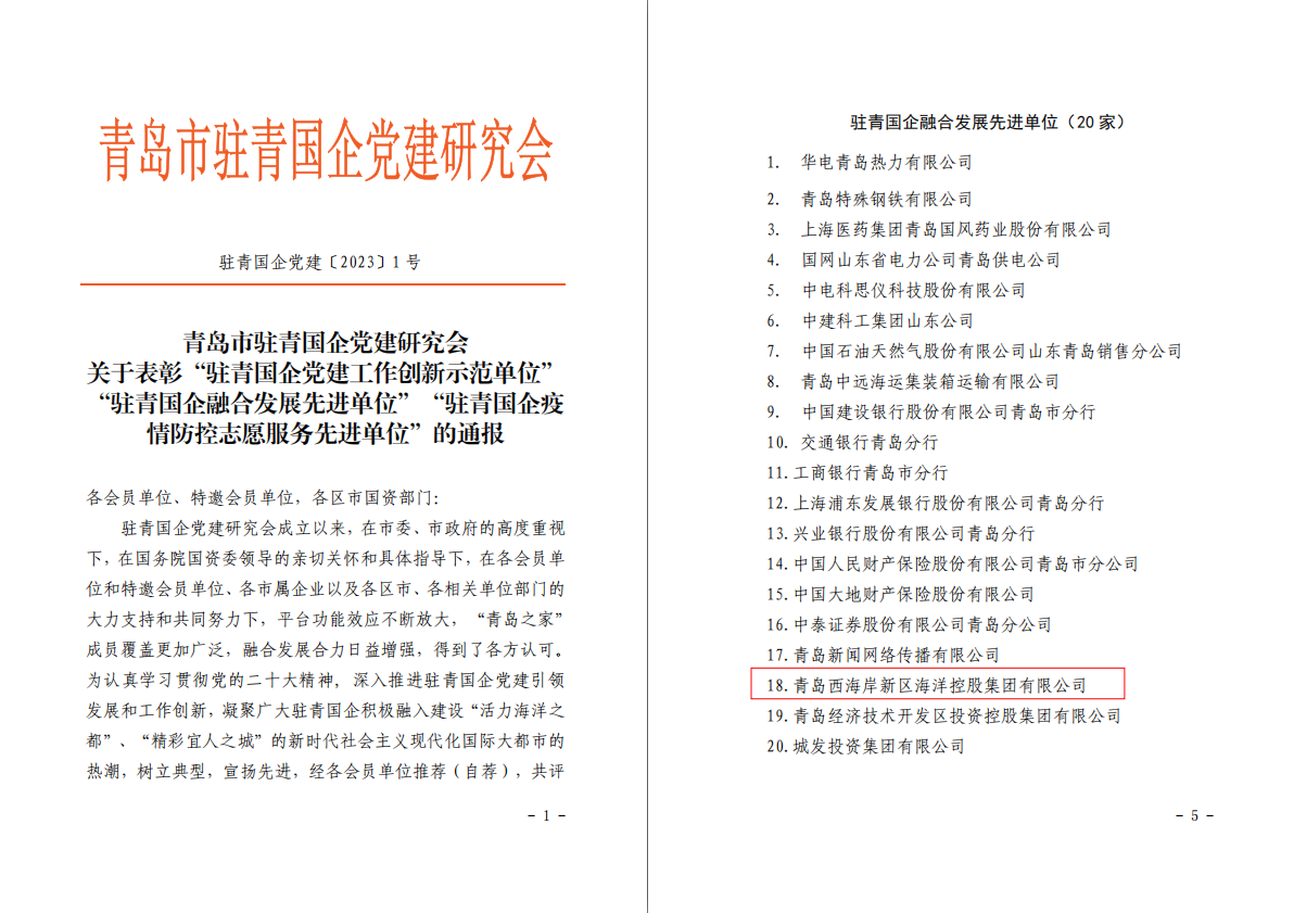 要聞信息 | ??丶瘓F榮獲“駐青國企融合發(fā)展先進單位”稱號