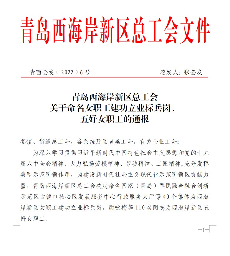 近日,青島西海岸新區(qū)女職工建功立業(yè)標兵崗名單出爐,包含40個集體,海控集團法務(wù)和風控管理崗獲評該榮譽。